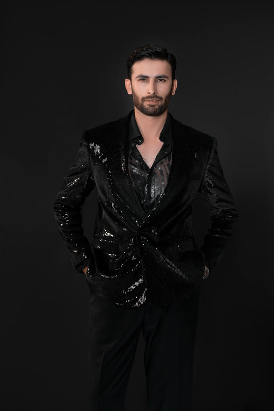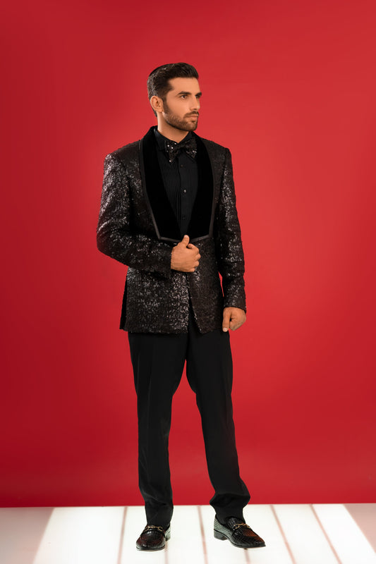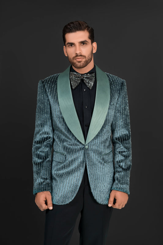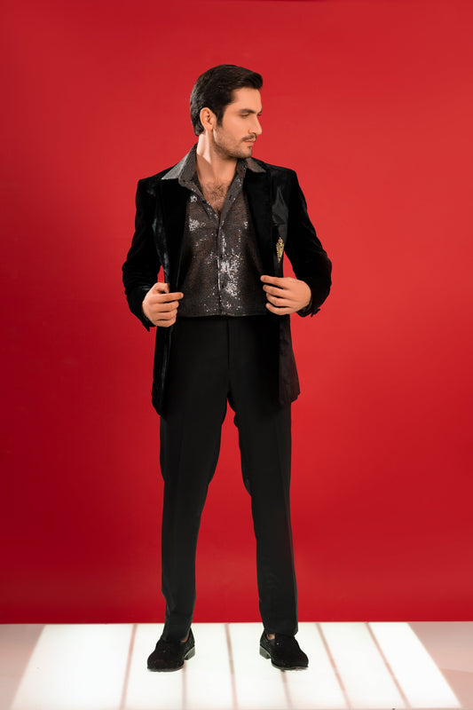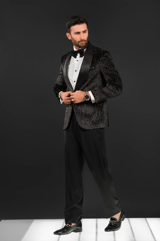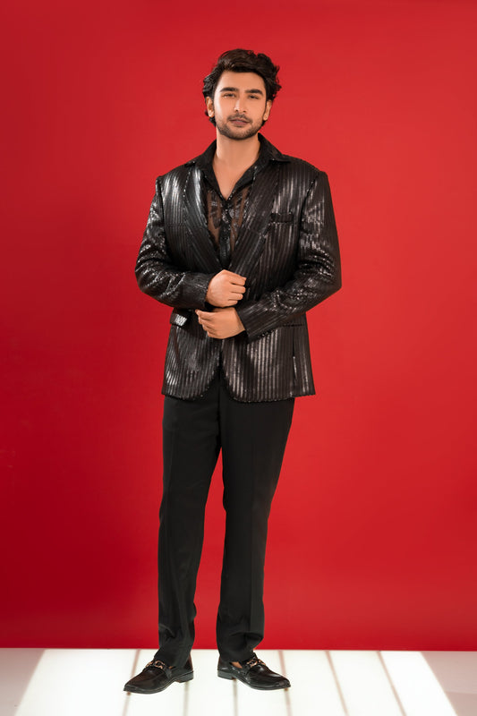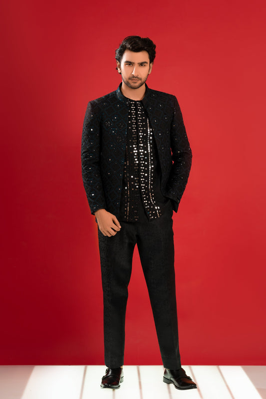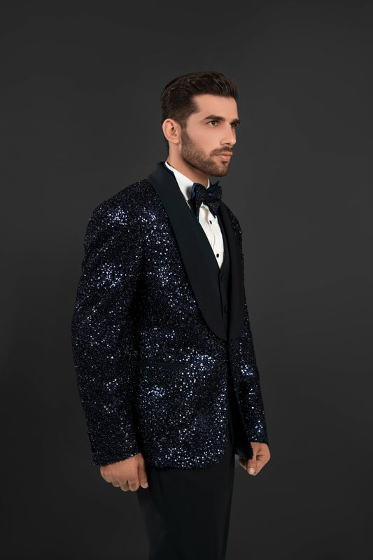 23WMPS029 Blue Black Pant Suit 2 Pcs