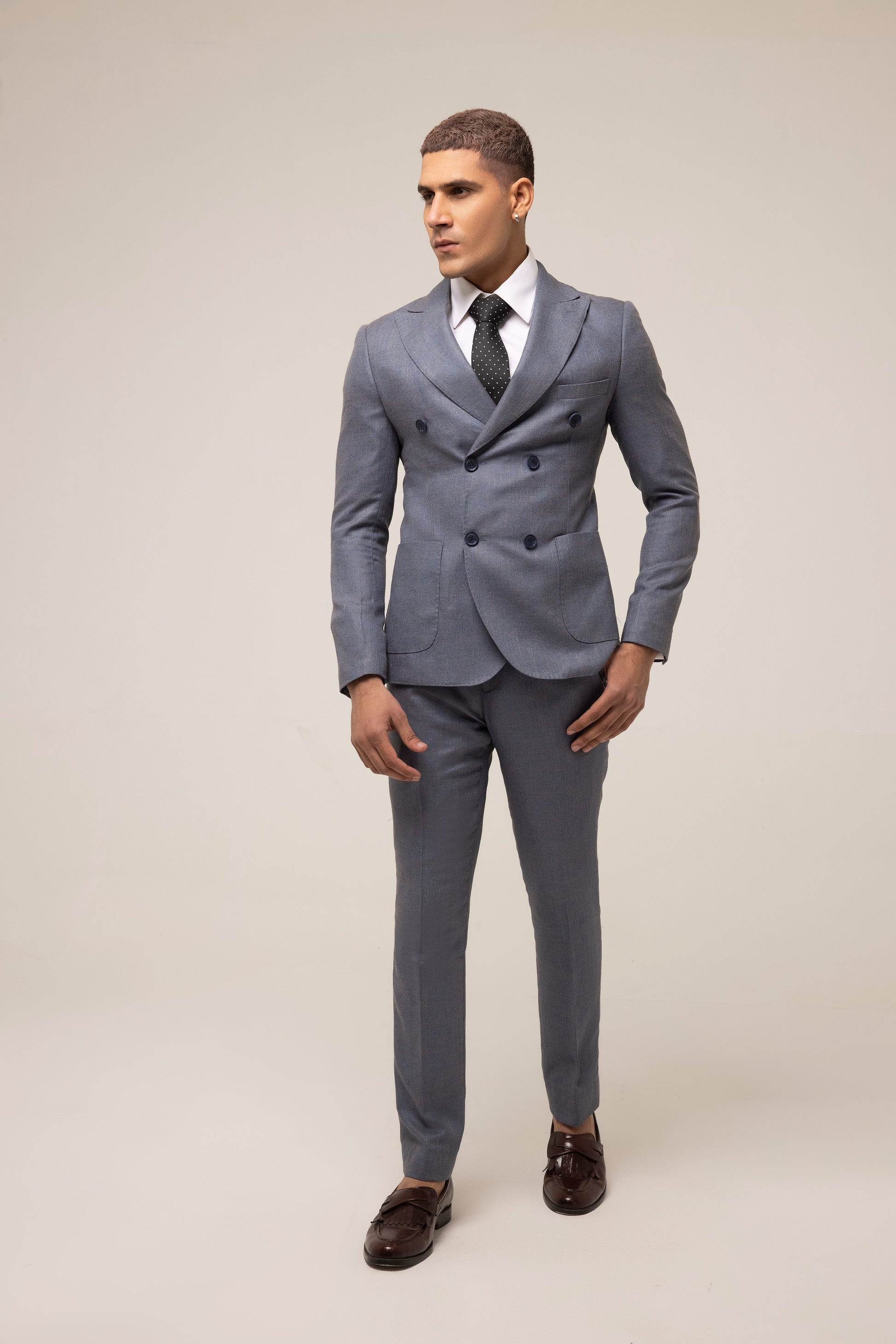 BLUE SLIM FIT DOUBLE BREASTED PINSTRIPE SUIT